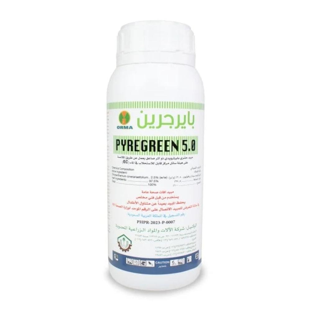 بايرجرين 5.0 هو مبيد حشري سائل مركز يتميز بمفعول سريع وفعال في وذو أثر صاعق يعمل عن طريق الملامسة في قتل الحشرات وهو مناسب للاستخدامات الداخلية في المنازل، المدارس، المستشفيات، المطاعم، المباني، العيادات، المسالخ، المحلات التجارية، المكاتب، أماكن تصنيع الأغذية، وسائل النقل المتعددة والمصانع وغيرها كما يستخدم في الأماكن الخارجية كمتنزهات، أماكن تجمعات القمامة، صناديق القمامة وغيرها من المواقع الخارجية.